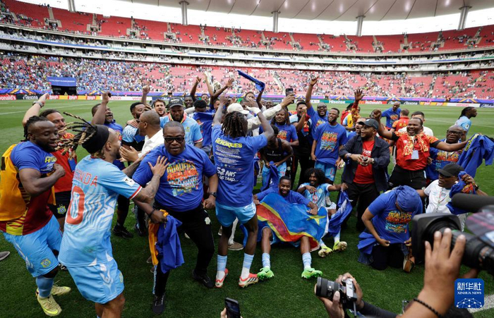 3月31日,刚果(金)队成员在晋级后庆祝。